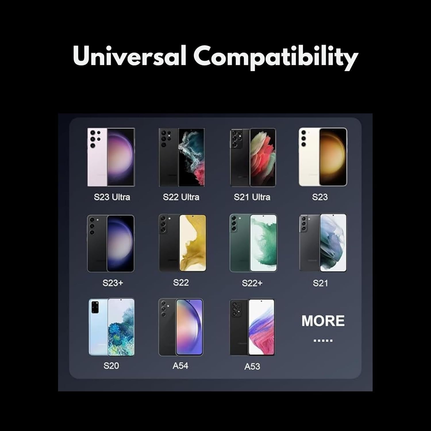 - Universal Compatibility: Samsung GalaxyS24, S24 Ultra, S24+, S23, S23 +, S23 Ultra, S22, S22 +, S22 Ultra, S21, S21 FE, S21 Ultra, S20, S20 FE, S20 Ultra, S10, S9, S8, Note 20, Note 20 Ultra, Note 10, A13, A15, A55, A54, A53, A52, A51, A50, A34, A33, A72, A71, A70, A05S , A04S, A03S, TAB S9/S8/S7, Z Flip4, Z Flip3, Z Fold3, Z Fold2 Tablet Compatible with other Type C Super Fast Galaxy devices