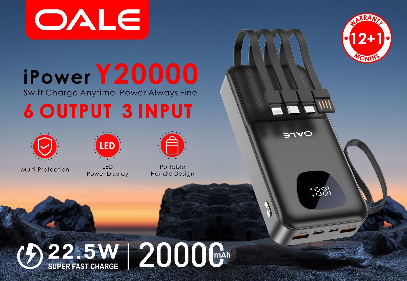 Stay charged anytime, anywhere with the Oale iPower Y20000, a high-capacity 20,000 mAh power bank designed for speed, versatility, and convenience. Perfect for all your devices, it delivers reliable and superfast charging on the go.