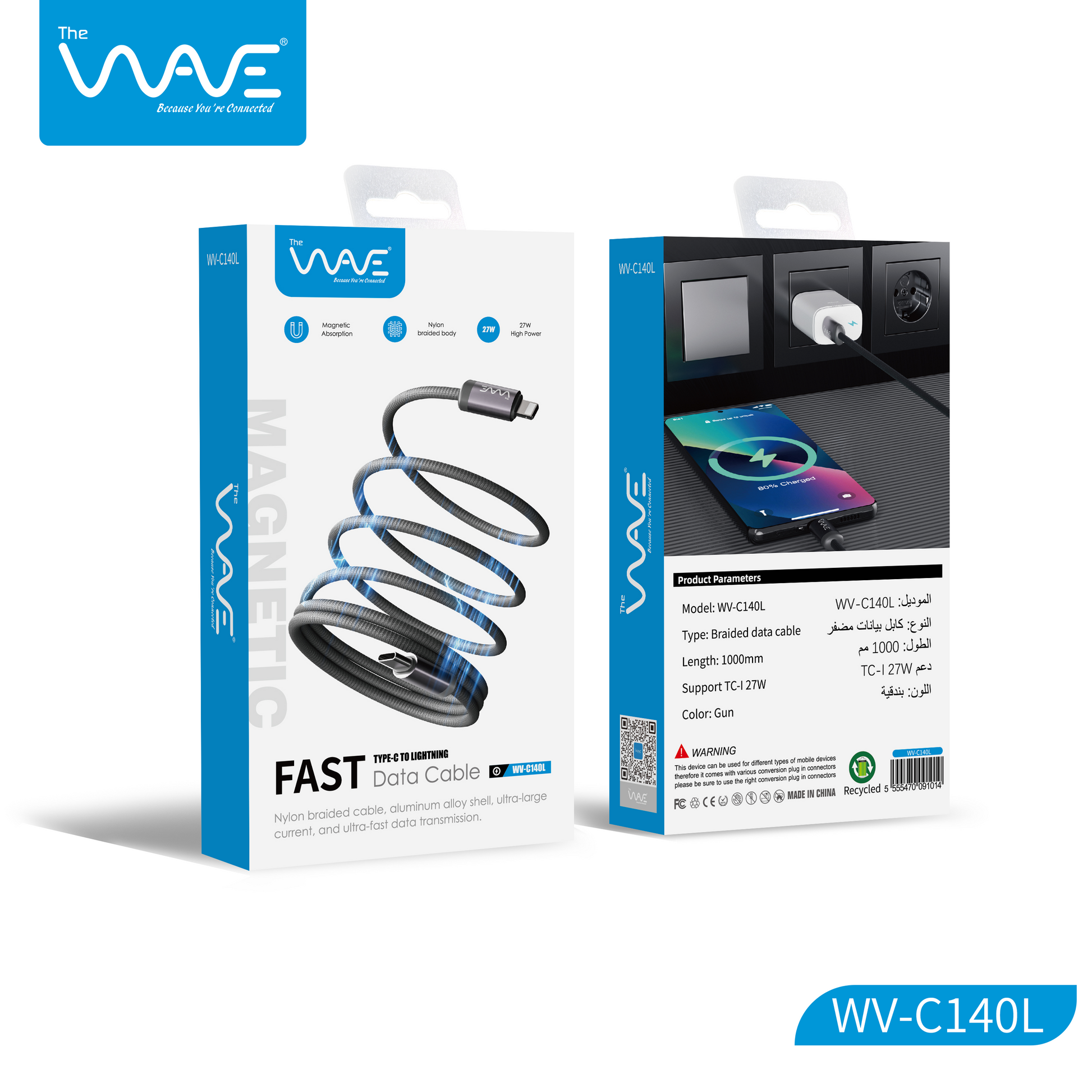 كابل مغناطيسي موجي من النوع C - Lightning 27 واط C140L