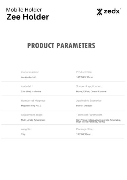 · Model: ZEE HOLDER 360